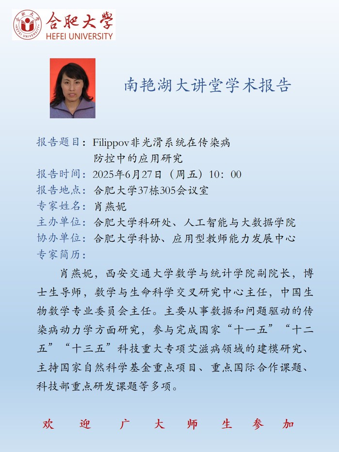 【南艳湖大讲堂】Filippov非光滑系统在传染病防控中的应用研究