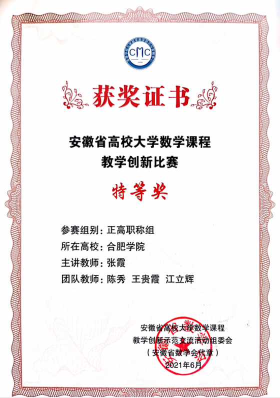 一流课程建设实现突破。《工程应用数学A》获评国家级一流本科课程,另有省级一流课程5门。依托“拓金计划”“双基”创建等党建教学融合项目,结合安徽智能制造、大数据产业趋势,融入前沿案例与实际问题,显著提升学生解决复杂问题及服务地方的实践能力。
