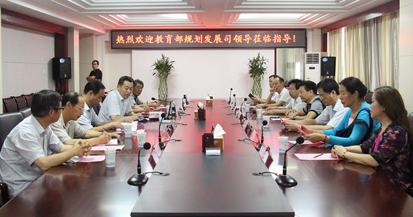 6月29日,教育部发展规划司后勤改革处朱宝铜处长在省教育厅副巡视员周元、省高校后勤管理中心主任陈鹏、副主任高昆同志的陪同下来校调研,校党委副书记、校长张文兵同志会见了调研组一行。