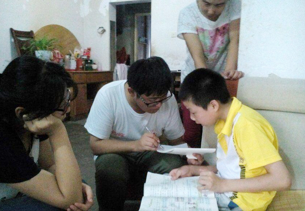 “四进社区”成员辅导小朋友作业