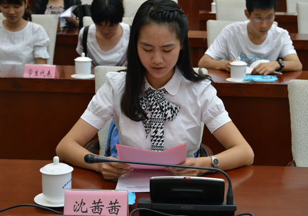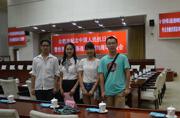 9月6日下午,合肥市纪念中国人民抗日战争暨世界反法西斯战争胜利70周年座谈会在市政务中心召开。省委市委领导出席会议并讲话。sunbet申搏沈茜茜、程寿月、董浩、袁众、常文玉五位同学作为合肥市大学生代表参加了会议,沈茜茜并代表全市大学生在座谈会上进行了发言。