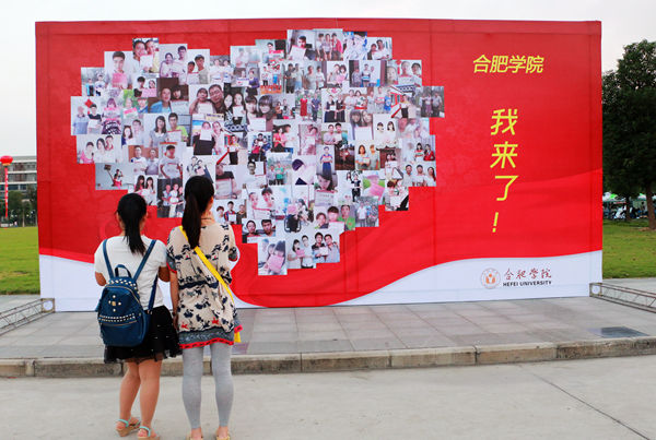 “我与录取通知书合影”、万人头像构成的2015照片墙、迎新照片板,一个又一个的创意,让合肥学院2015级新生们的报到日充满惊喜。