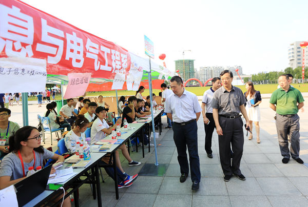 9月9日至10日,合肥学院校园内彩旗飘扬,人潮涌动,喜迎2015级新生入学。在学校相关部门和各系的共同努力、协同配合下,2015级本科生、研究生新生报到工作顺利进行,共有近百名教工和千名学生志愿者参与了迎新工作。校领导张文兵、丁明等亲临现场,检查、指导迎新工作并向为迎新工作付出辛勤劳动的师生表示慰问和感谢。今年sunbet申搏的迎新工作更加突出了“信息化、人性化”的特点,高效、便捷的迎新工作赢得了新生和家长们的连连称赞。
