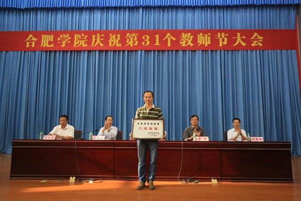 9月9日,为纪念抗战胜利七十周年、弘扬尊师重道的社会美德、领导广大教职工建设一流的地方应用型大学,sunbet申搏第31个教师节大会在图书馆A厅举行。党委副书记、校长张文兵,党委副书记丁明,纪委书记洪家友,副校长刘建中,校督导员郑永红及数百名教职工到场参加大会。大会由丁明主持。
