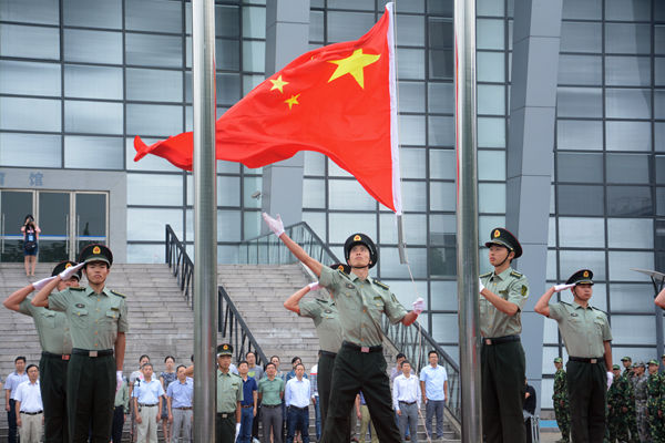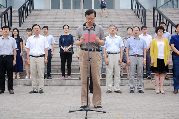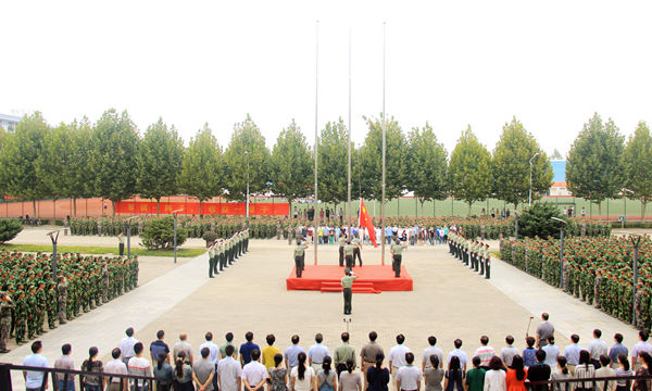 9月18日,为纪念“九一八事变”八十四周年,铭记历史、缅怀先烈、真爱和平、开创未来,sunbet申搏在体育馆前隆重举行升旗仪式。党委副书记丁明出席仪式,仪式由学工部部长董承军主持。老师代表、学生代表及2015级部分新生参加。