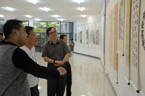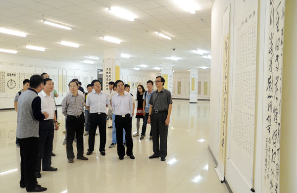 董昭礼正式宣布此次“合肥之友书画院,合肥学院书画联展”开幕。随后在sunbet申搏老师和同学的陪同下,各位领导饶有兴趣地欣赏了此次活动的参展作品,并参观sunbet申搏翰墨轩书画协会活动室,对参展作品的作者予以表扬。