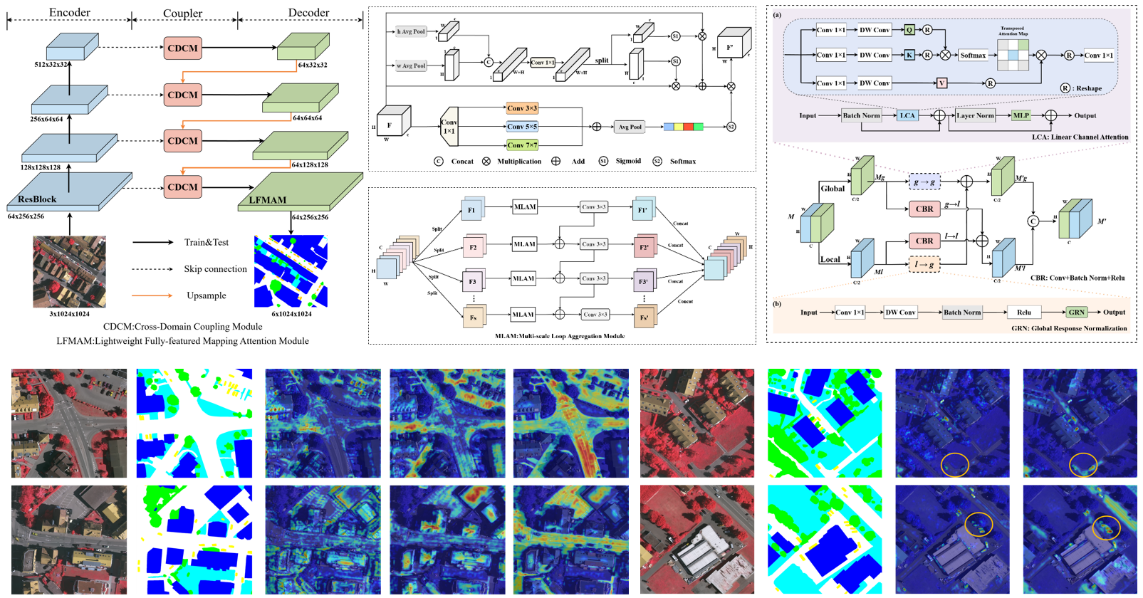 在复杂场景遥感语义分割方向,团队提出轻量级跨域耦合网络(LCCN)。该网络创新性采用“Encoder-Coupler-Decoder”架构,耦合器中通过跨域耦合模块实现多尺度特征提取与全局信息建模,解码器中借助轻量级全特征映射注意力模块捕捉多维度特征交互,优化复杂场景下的语义分割效果。王晓峰教授为第一作者,陈岩博士为通讯作者,sunbet申搏官方网站人工智能与大数据学院为第一完成单位。(论文标题:Cross-Domain Coupling Network With Lightweight Fully Featured Mapping and Loop Aggregation for Semantic Segmentation of High-Resolution Remote Sensing Images,引用链接:https://ieeexplore.ieee.org/document/11129080)