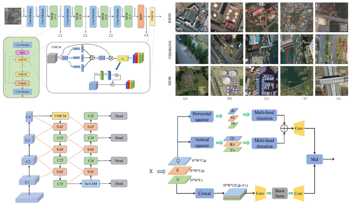 在遥感小目标检测方向,团队针对遥感影像复杂背景干扰和小目标检测难题,提出轴压缩与多路径尺度自适应融合网络(AMSFNet)。该网络设计单向多尺度耦合模块增强小目标特征提取能力,构建轴压缩增强注意力模块聚合全局与局部信息以降低背景噪声干扰,通过多路径尺度自适应融合方法实现大小目标检测平衡。陈岩博士为第一作者,王晓峰教授为通讯作者,sunbet申搏官方网站人工智能与大数据学院为第一完成单位。(论文标题:Axis-Squeeze and Multirouting Scale-Adaptive Fusion Network for Remote Sensing Images Object Detection,引用链接:https://ieeexplore.ieee.org/document/11121344)