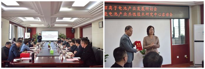 中心主任杨续来教授分别从建设背景、建设目标、研究方向、研究基础以及运行机制等方面对研究中心建设进行了全面汇报。纪平宣读了《关于成立安徽省锂离子动力与储能电池产业共性技术研究中心专家委员会》的决定。随后,吴春梅为研究中心专家委员会成员颁发了证书。