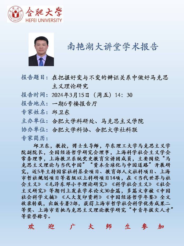 【南艳湖大讲堂】在把握好变与不变的辩证关系中做好马克思主义理论研究