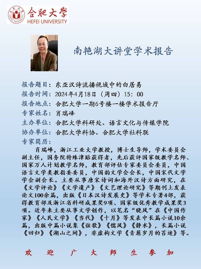 【南艳湖大讲堂】东亚汉诗流播视域中的白居易