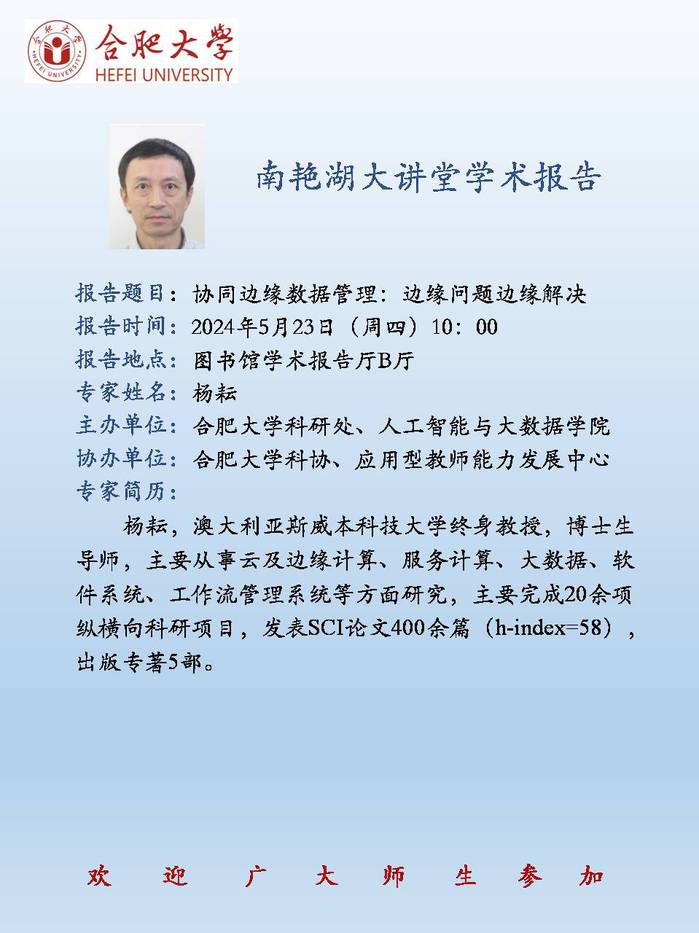 【南艳湖大讲堂】协同边缘数据管理:边缘问题边缘解决