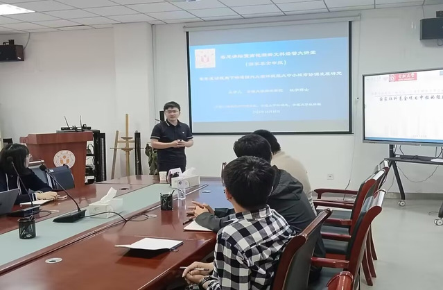 为进一步提升科研氛围,增强教师科研能力,10月15日下午,经济与管理学院在4栋二楼会议室举办善思讲坛暨南艳湖新文科经管大讲堂,特邀安徽大学经济学院杜宇博士作题为要素流动视角下畅通国内大循环赋能大中小城市协调发展研究的国家基金申报经验分享。会议由经贸系副主任杨阳主持,经济与管理学院20多位教师参加。