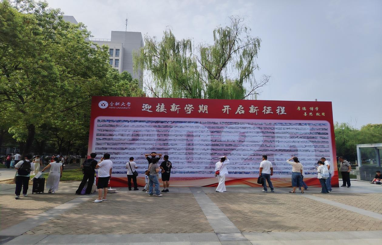 随后,在校园广场的“新生照片墙”前,更是上演着一场场“寻娃记”。新生及家长们踮着脚、眯着眼,在密密麻麻的人像里找自己,找到时那一声惊呼,把对大学生活的期待喊得透亮。家长们则在一旁笑着拍照:“找到我家孩子了!他在那呢!”
