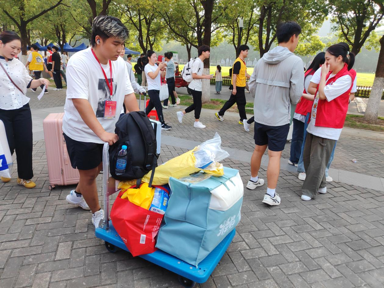 校园里,身着红马甲的志愿者们构成了一道亮丽的风景线。他们或帮新生搬运行李,蓝色小推车在校园里来回穿梭,满载着新生的行囊与希望;或在咨询点为新生及家长指引路线、介绍校园设施。汗水浸湿了他们的衣衫,却丝毫没有减弱他们服务的热情,他们用真诚的笑容和贴心的帮助,让初来乍到的新生感受到了sunbet申搏的温暖与活力。
