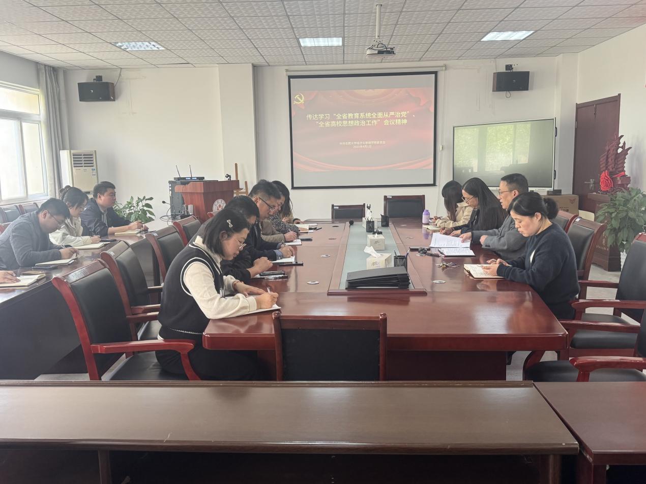 经管学院传达学习“2025年全省教育系统全面从严治党工作视频会议”和“全省高校思想政治工作会议”精神