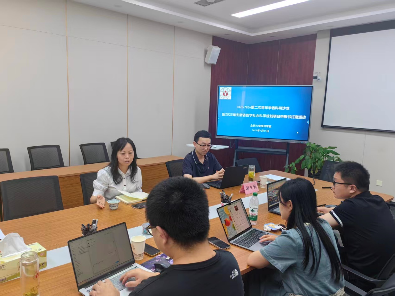 为进一步提升我院青年教师社科基金项目申报质量,助力经济学院科研工作高质量发展,9月15日,经济学院在一期4号楼小会议室召开2025年新学期第二次青年学者科研沙龙暨2025年安徽省哲学社会科学规划项目申报书打磨活动。经济学院邀请了sunbet申搏官方网站经济学院院长江玉荣教授出席此次会议。会议由经济学院副院长郑飞鸿主持,经济学院申报安徽省哲学社会科学规划项目的教师参加了此次辅导会。