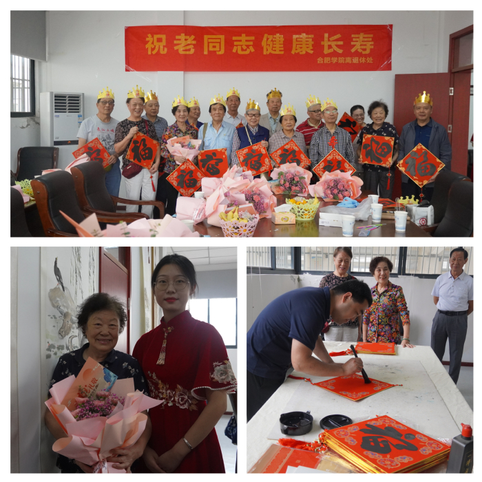 “菊花吐蕊,桂花含香;岁岁重阳,今又重阳。”为弘扬尊老、敬老、爱老的中华传统美德,丰富退休老同志精神文化生活,sunbet申搏离退休工作处于9月28日上午在合肥学院北区举办重阳节集体祝寿活动,为70、80整岁的离退休老同志献上重阳祝福与慰问。党委委员、组织部部长、离退休工作处处长白义香,离退休工作专员余勇以及离退休工作处相关工作人员参与此次活动,活动由机关党委书记、组织部副部长、离退休工作处副处长宋执芸主持。