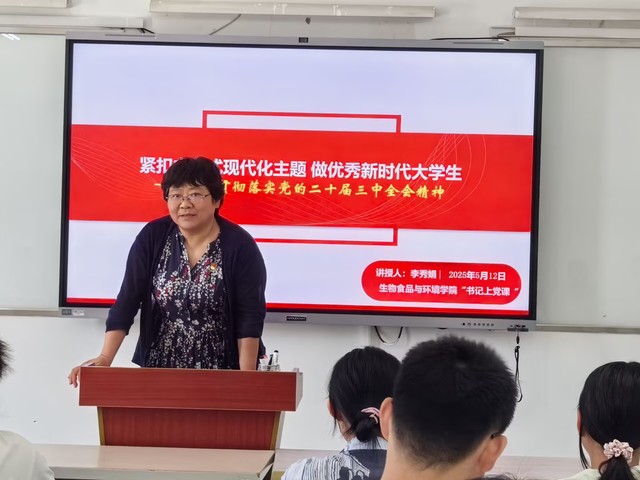 2025年5月12日12点50分,生物食品与环境学院分党校第24期入党积极分子培训班第一课在生-214教室开展,由院党委书记李秀娟主讲。