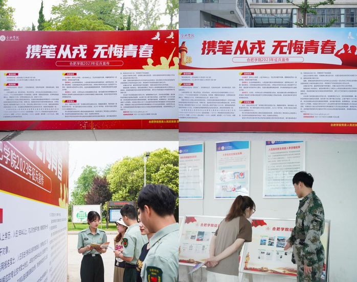 扩大宣传面,砥砺报国志。校人武部逐一走访二级学院,在全校范围内召开征兵工作动员座谈会,详细介绍征兵入伍相关流程、政策,有力推进学校征兵就业工作向好发展。座谈会期间,有入伍经历的学生分享经验、提出建议,有效激发了学生对军旅生活的向往。同时,人武部在校园内放置国防教育主题宣传展板,对国防知识、征兵政策进行细致介绍。通过校征兵工作站面向全校学生开展征兵工作咨询服务,帮助学生加深对相关政策的了解。