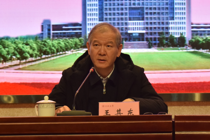 王其东发表题为《强化领导落实责任全面推进审核评估有效落实》的动员讲话。王其东强调,迎评促建工作是一项系统工程,既需要学校的顶层设计、统筹安排,也需要各单位、各部门的精心组织、具体落实,更需要广大师生积极参与、主动作为。全校上下要牢固树立“一盘棋”的思想,提高政治站位,做好顶层设计和各项工作的有机衔接,形成合力,确保审核评估工作全面有效推进。
