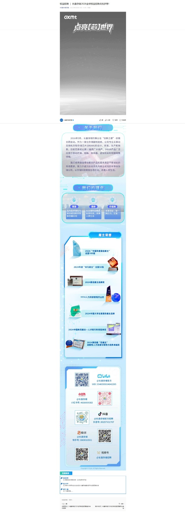 校园招聘 | 长鑫存储2026全球校园招聘点亮梦想!