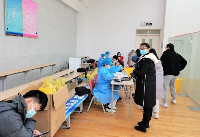 2021年12月28日,sunbet申搏在二期体育馆开展新冠疫苗加强免疫接种工作,共有1638名符合接种条件的师生员工完成加强针接种。