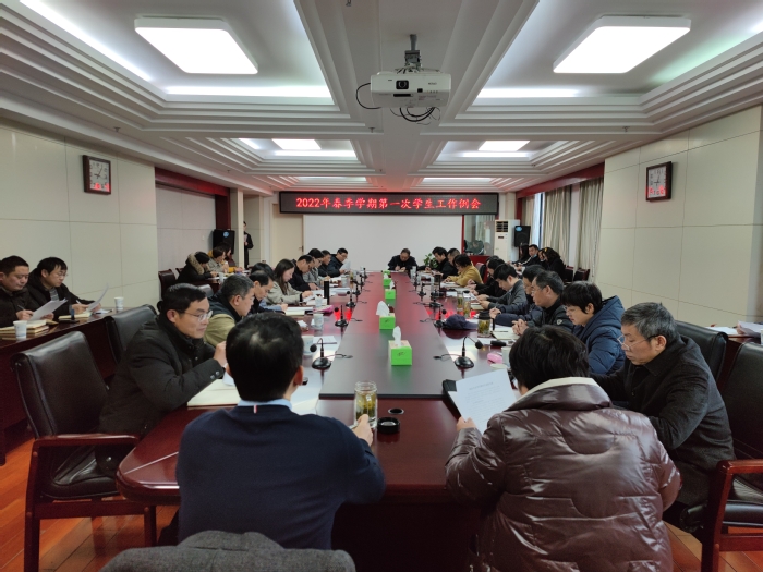为部署常态化疫情防控下开学事宜,统筹年后学生工作安排,学校于2月17日上午在行政楼第八会议室召开2022年春季学期第一次学生工作例会。校党委副书记刘建中出席,各职能部门负责人、各二级学院党委书记、副书记参加,会议由校党委委员、学生处处长朱涛主持。